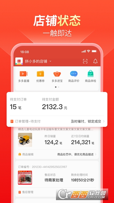拼多多官方推出的手机版店铺管理平台,1分钟掌握店铺动态,1站式搞定日常经营!