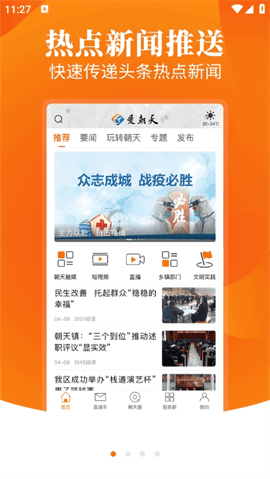 1.热点新闻推送,本地一手资讯,尽在爱朝天抢鲜看