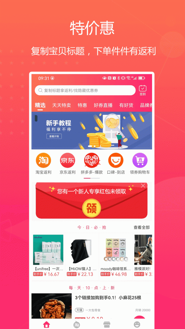 3、支持淘宝天猫,京东,拼多多返利