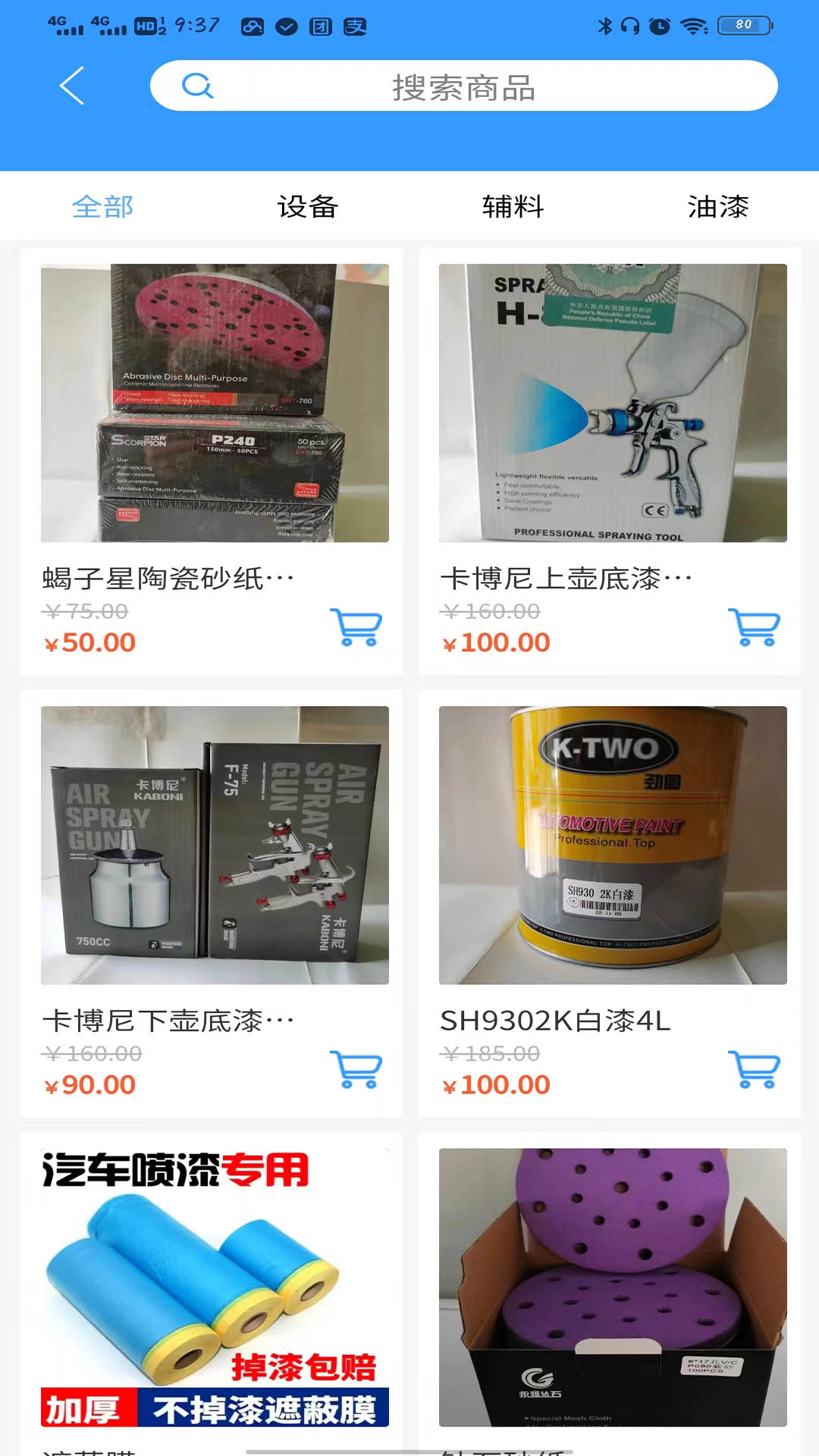 用户可以浏览和购买多种类型的涂料,包括室内漆、外墙漆、木器漆等,以及相关的涂装工具和配件,满足不同装修需求。
