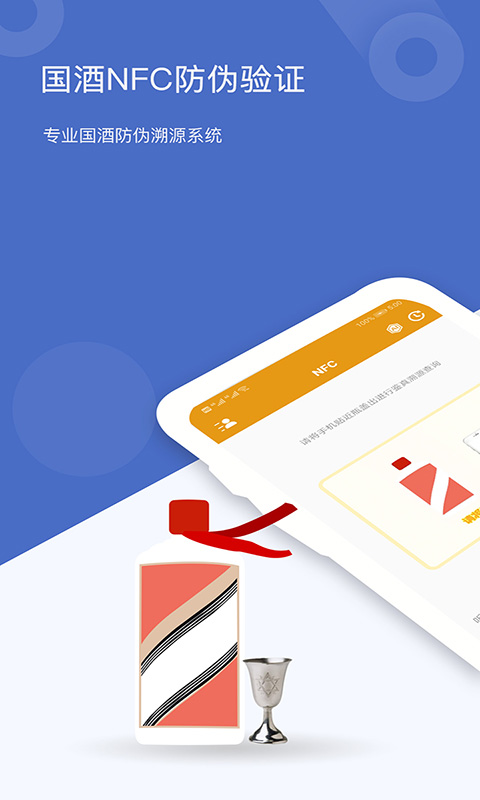 3、通过手机NFC扫描瓶盖,快速识别真伪,用户只需使用手机背部感应酒盖胶帽区域,即可自动比对茅台镇国酒真伪信息。流程便捷,识别率高,是市面公认的真假查询权威软件