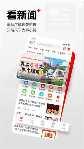 2.看东莞时事:用户打开应用即可看到当前最热点的东莞本地资讯,通过依托东莞报业的新闻人才为您推荐当前最具爆点的报道。