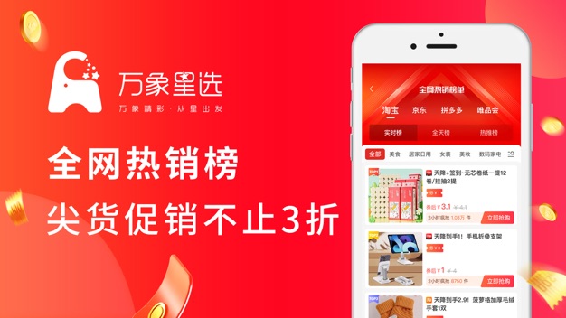 1、万象星选是一个很实用的购物返利平台,这里的商品每天都会上新,而且都是现在使用人数最多的电商平台的商品,你们有什么看中的商品可以来这里下单哦,毕竟买东西还能省钱,谁不喜欢,所以有兴趣的赶紧来下载吧