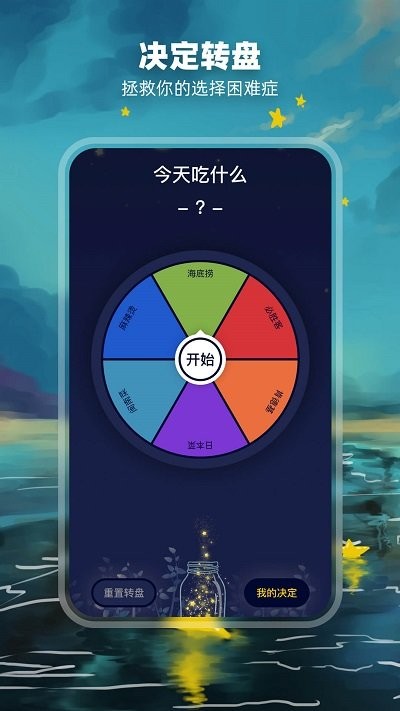 1、决定转盘:决定事情盘创建小决定大转盘,可选择今天吃什么、谁喝酒等,妥妥的聚会神器。