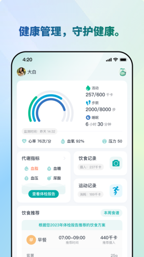 对你的健康数据进行实时跟踪,让你以后及时掌握健康预警信息;