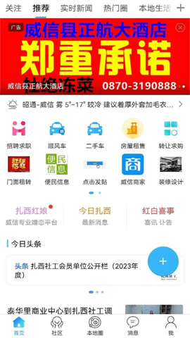 内容和服务高度贴合威信县本地场景,不管是实时新闻动态、红白喜事资讯,还是本地兼职、团购优惠等信息,均精准匹配当地居民的生活与信息需求,信息针对性远超综合类生活 APP。