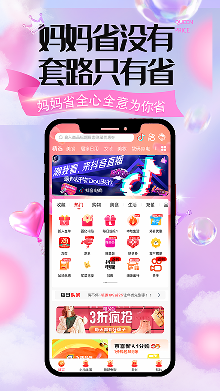 妈妈省是一款手机购物软件,海量商品任你挑选,汇聚各类电子数码,母婴用品,美妆护肤,潮流服饰,家居用品等,价格优惠,品质有保障,有超多优惠券可以免费领取,让你花最少的钱买到心仪的商品。