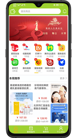 1、居民服务网是一个非常大的居家生活服务购物平台,在上面我们可以看到购物、娱乐、健康、资讯、旅游、美食等很多版块,应有尽有,所有的商品也都是包邮的,用户可以放心购买,使用起来非常方便。感兴趣的小伙伴快下载吧