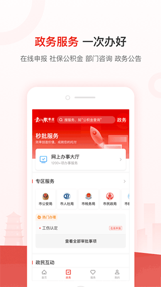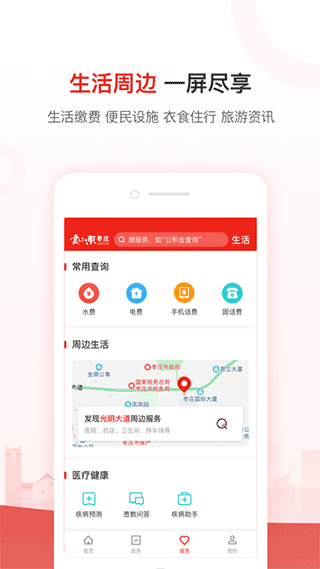 医疗服务、社保公积金、法律服务、周边生活、违章查缴等便民服务,隔着屏幕尽享生活。