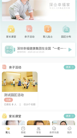 深业幸福家app是一款智慧托育移动服务平台,平台拥有丰富的功能及服务,包含了首页,亲师沟通,我的等板块,可以帮助孩子更好的成长。