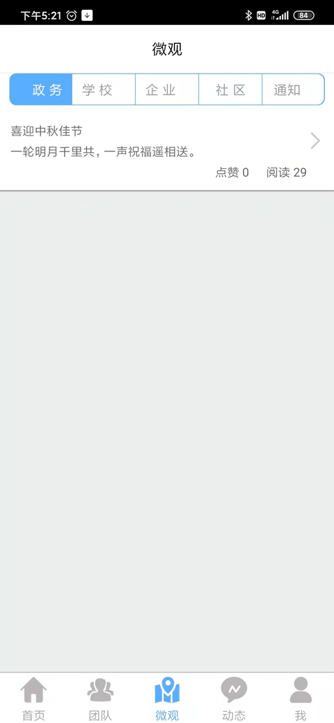 辽宁志愿者目前分为“首页”、“团队”、“微观”、“动态”、“我”五个模块。方便用户在户外参加活动时使用。