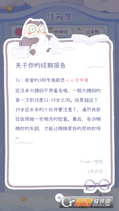 棉棉月历app是一群居住在棉棉星球的小可爱们,为你守护成长秘密app,在棉棉星球,这里有自律呆萌记录鸭,憨厚正直科研咕,也有古灵精怪月历喵,最后就是百变金星☆棉棉兔。它们将会一起陪伴少女的成长,为你扫除姨妈的阴霾,并记录相关症状,从而更好地关注你的健康变化。