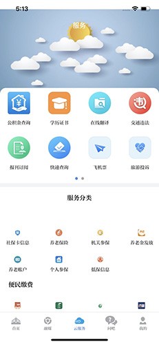 3.融合当地各种各样民生服务打造出内蒙古自治区当地综合性的新闻客户端。客户端设定有主页、融媒、云服务、云空间、我的几个版面。