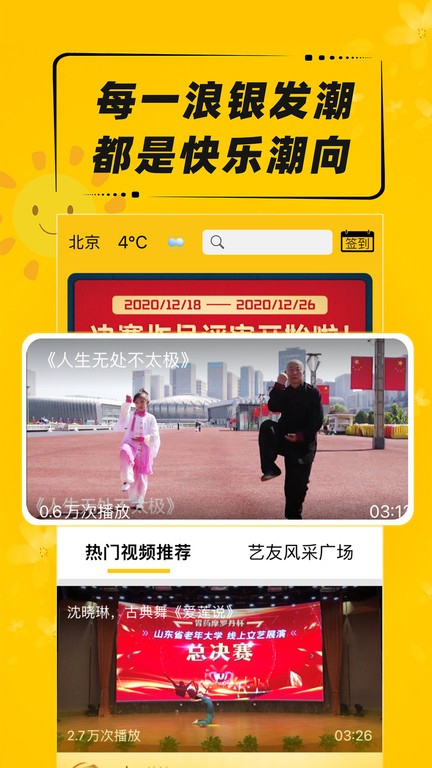 艺百app中年人娱乐平台是一款专业为中老年人服务的休闲娱乐互动平台,这里有各种有趣的版块等你来体验,你可以在这里进行文娱,休闲,学习等各种兴趣社区的交流,让你的老年生活变得不再无聊。