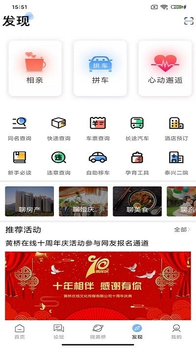 用户可以讨论黄桥的大型活动、启示、分享消费体验、发布私人照片、参与互动活动等