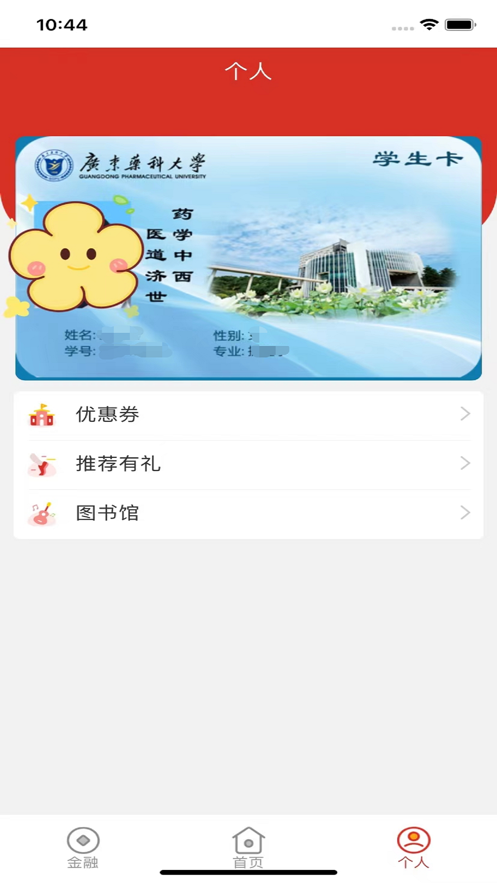 个人提供是否有可用优惠券、推荐码、图书馆动态码功能。