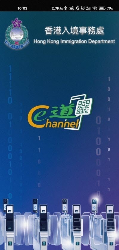 非触式e-道流动应用程式让合资格的香港居民登记使用非触式e-道服务。完成登记后,市民只需要利用他们的个人流动电话产生的加密e-道二维码进入非触式e-道内,并在标示的位置望向镜头,让系统核实其容貌便可办理出入境手续,过程中不用接触共用的指纹扫描器。