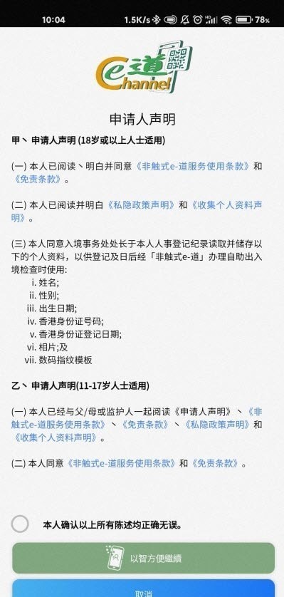 阅读声明及提交登记后,系统会透过「智方便」验证其身分