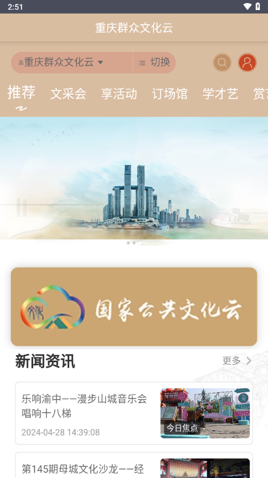 重庆群众文化云是一款聚焦文化领域,提供公众文化生活服务的交互互联网平台,