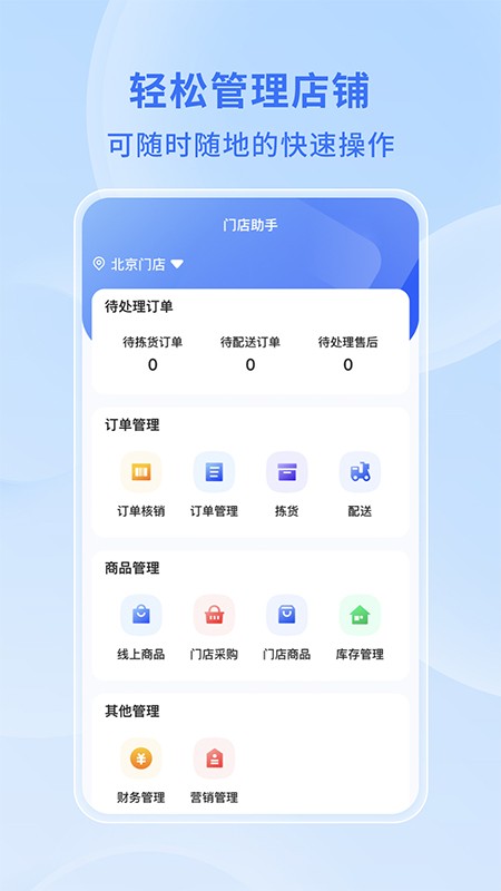 简洁的界面可以让门店助手中的各种店铺管理功能清晰可见,让各种功能使用更方便。