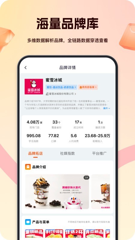 1、海量品牌库:提供20w+海量品牌门店数据分析