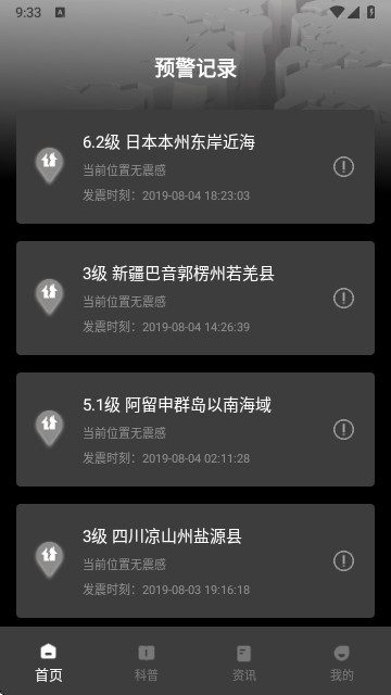 2、用户可以在线查看历史预警记录,了解地震的等级。