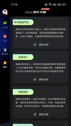 Chat创作大师是一款功能非常专业的智能写作软件,内置各类文案模板,包括广告、新闻稿、产品介绍等等,可以为用户提供了充足的灵感和资源,还能提供各种语言风格和关键词优化建议,帮助用户提升文章的质量和搜索排名,让用户使用起来非常的方便快捷,感兴趣的用户快来下载试试吧!