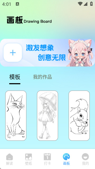 通过平台发现许多精彩的漫画,以后你就不会错过各种漫画内容了。漫画社画板最新版还为你提供了漫画画板,你就能使用软件提供的画板,轻松的进行绘画操作了,让用户能够快速的绘制各种漫画,以后用户才可以及时保留各种绘画灵感,绝对是你的绘画好助手,让绘画可以变得更轻松!