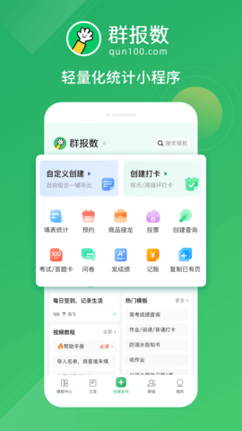 多场景适用:群报数支持上百个模板,适用于家校沟通、政企管理、活动报名、团购接龙、签到打卡、调查问卷、投票活动等多种场景。