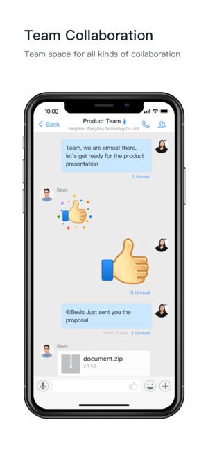 dingtalk提供多种强大的团队合作工具,包括基于公司地址簿的群聊,消息读取/未读状态,团队文档共享,消息到任务/会议/通知转换等