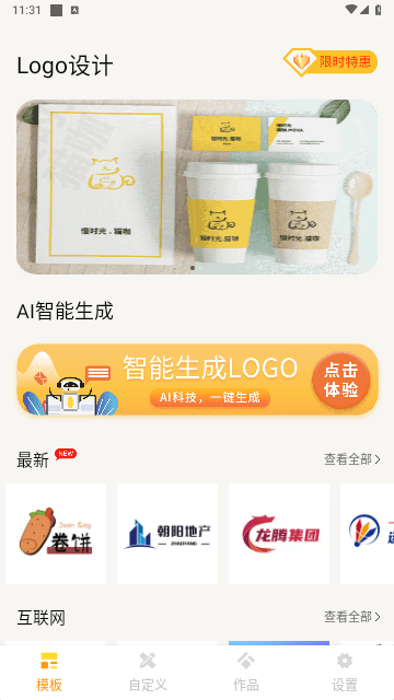 2、多彩模板风格:提供基础模板及时尚、简约、文字风等超多风格模板任你选,轻松绘制百变logo;