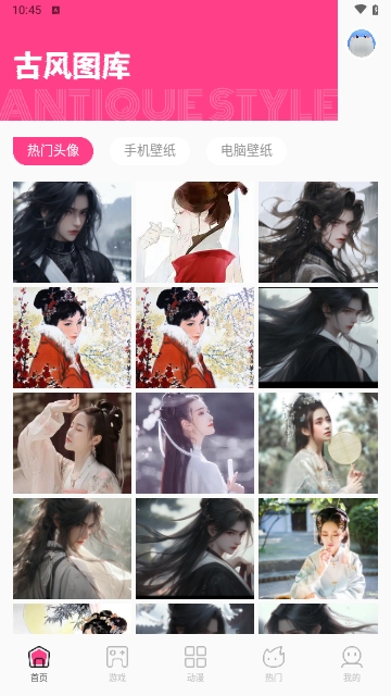 国风图库APP是一款备受追捧的热门国风壁纸,户可以在这个软件中浏览和下载各种与中国国风相关的图片,无论是为手机精心挑选的壁纸,还是趣味十足的个性头像,亦或是专为电脑设计的壁纸,一应俱全,能够充分满足用户多样化的使用和审美需求。