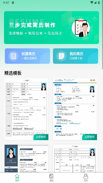 简历神器app提供海量简历模板,支持云端同步和智能排版。模板由500强企业HR设计,具有较高的竞争力。软件还提供各个行业的求职经验和面试技巧,给你最好的简历服务。还在等什么?有需要的朋友们一定不能错过,快来下载使用吧。