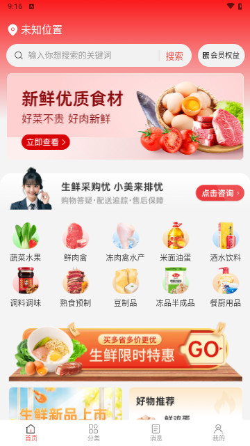 3、商品分类,将食材商品分为多个类别推荐展示,方便用户快速查找选购商品。