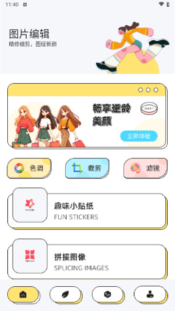 4、可以在软件上选择自己喜欢的贴纸、滤镜一键加入图片。