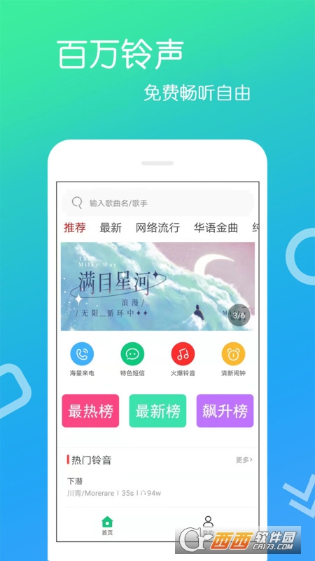 有网络流行、轻音乐、DJ、欧美日韩、时下热播剧、恶搞、摇滚等火热铃声,汇聚各大明星来电歌曲。