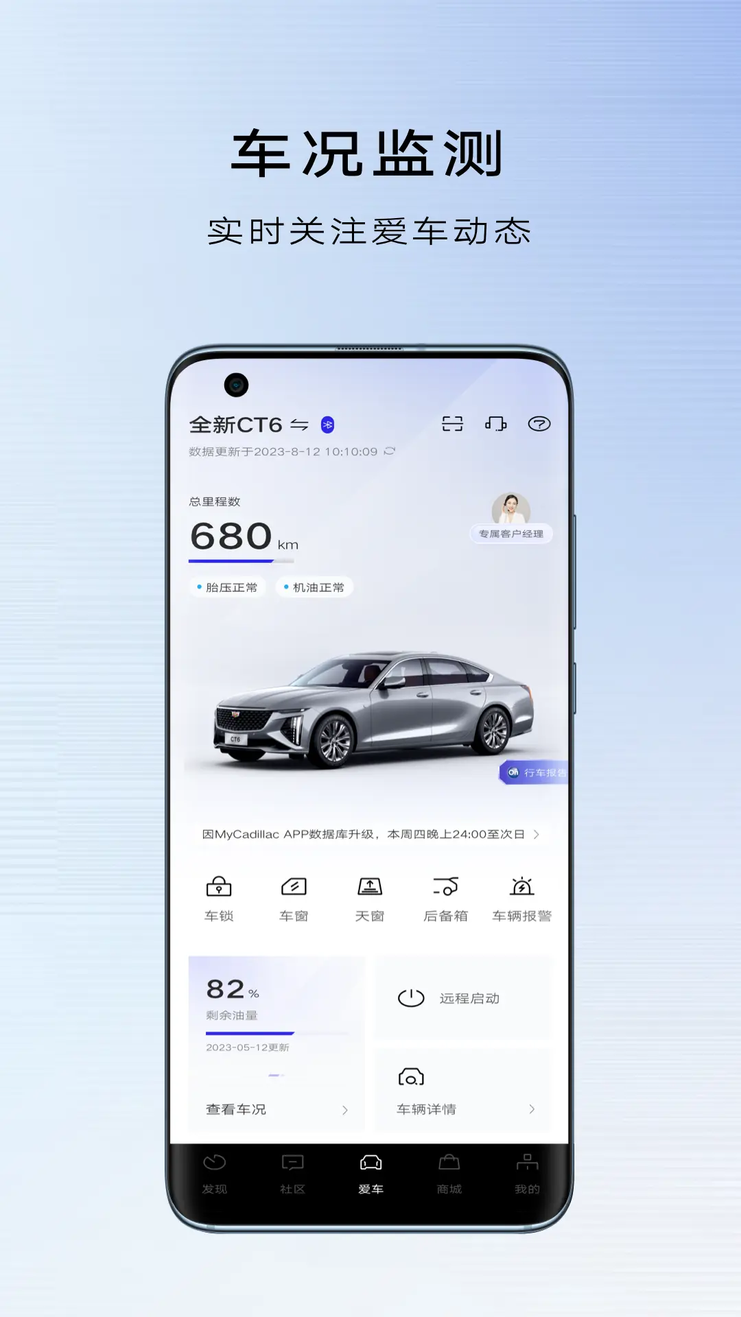 MyCadillac凯迪拉克绝对是车主必备远程控制软件,这款软件只需要通过手机就可以进行连接,线上功能丰富实用,您可以随时查看个人爱车状态,提供线上特色保养服务,福利活动也是非常多的,以及特色商城、资讯内容一应俱全,而且兼容性极强,可以根据用户的实际情况为你量身定制的智能化专属服务,日常生活出行必备,喜欢的小伙伴们快来下载体验吧!