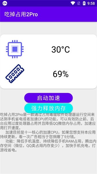 吃掉占用2pro手机版这是能帮助清理内存,让系统更加流程的一个垃圾清除工具。简单的使用方式能让你快速上手,只需一键点击即可加速运行速度,减少延缓等待时间,一键清理,释放手机内存,提升手机流畅度,是款很实用的工具。