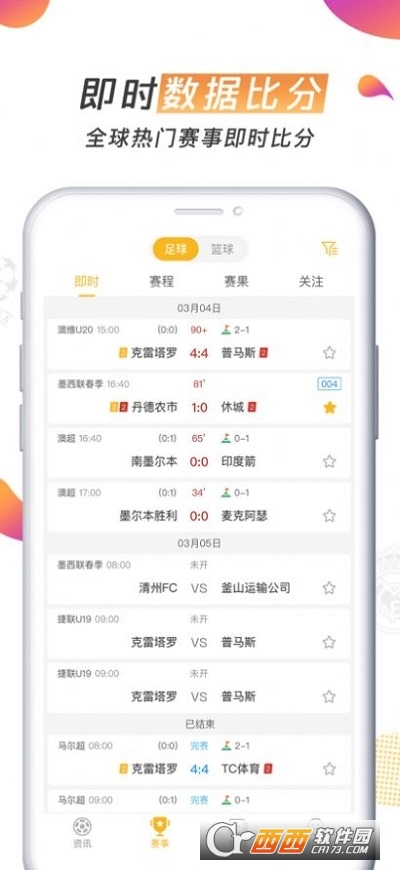 2、即时数据比分,热门比赛,赛前预约。