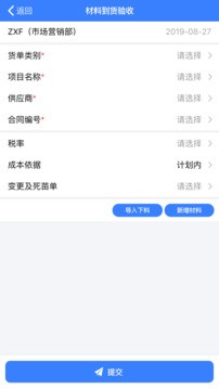 3、到货验收,用户在线就可以对材料进行验收,输入相关信息即可完成验收操作;