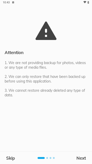 All Backup Restore中所带给大家的相关的手机数据恢复使用操作是非常可靠的,使用非常的轻松便捷,轻松完成各种数据的备份和恢复服务,还可以将数据上传备份至云端,界面操作体验是非常不错的,有需要的小伙伴快来下载吧!