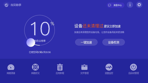 当贝助手精简版APP是一款非常专业好用的电视必备工具,免升级界面干净清爽,不用登录可以直接使用,帮助用户清理电视上的内容,快速检测,还有跑分的功能,让你的电视运行速度更快,优化网络保障视频的流畅播放效果。