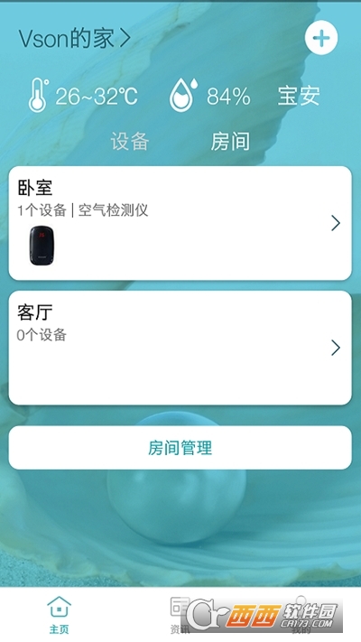 小美智能App将家里的智能设备分为空气检测、净化消毒、传感器、生活电器等类别。空气检测设备能够检测环境中的有害物质