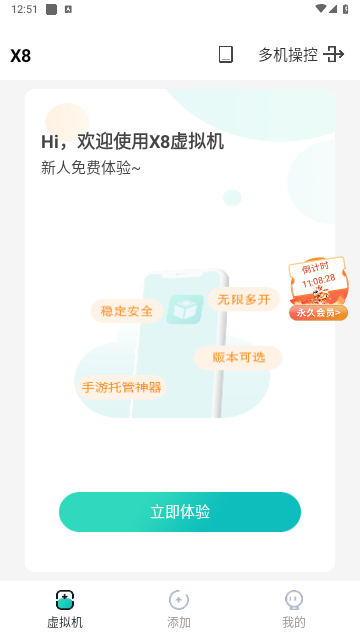 X8虚拟机是一款多样化的虚拟机、安卓模拟器应用。旨在满足手机发烧友的多样化需求。其主要功能包括多版本ROM系统支持、息屏挂机、手机悬浮窗、文件导入、数据互通、修改分辨率和穿透模式等。有需要的朋友们不能错过,快来下载使用吧。