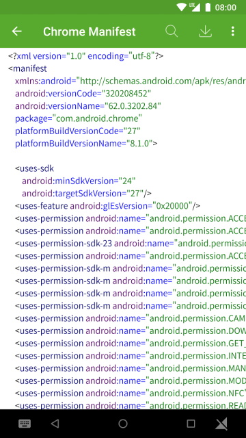 支持查看任意App Manifest信息,支持查找,支持以TXT或者HTML格式保存到SD卡。