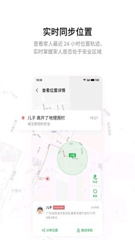 3、能查看足迹,家人外出的行程,手机上可以实时的看到,一键获取你的地理位置信息,还能提醒地理位置。