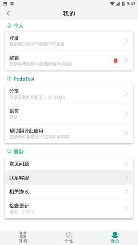2、PodsTool可以随时查询耳机的电量,以及定位耳机的位置,再也不用怕耳机找不到了。