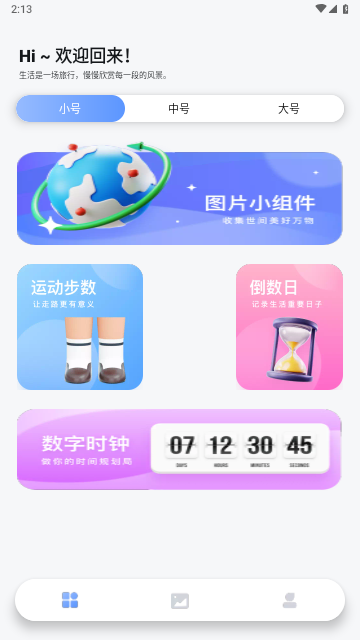 小组件功能:用户可以根据自己的想法自由组合设计,打造专属屏幕,包括偶像照片、文字图片、倒计时、纪念日、快捷方式、计步、天气等。