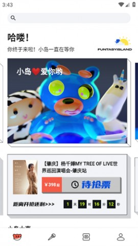 纷玩岛APP能够让大家快速了解最新的演唱会资讯,帮你获得第一手演出相关的内容。大家可以在这里快速购票,更多的线下门票和周边都能在app中找到。查看演唱会门票座位,为你挑选更佳的观看位置,和粉丝们一起在这里为喜欢的明星加油吧!