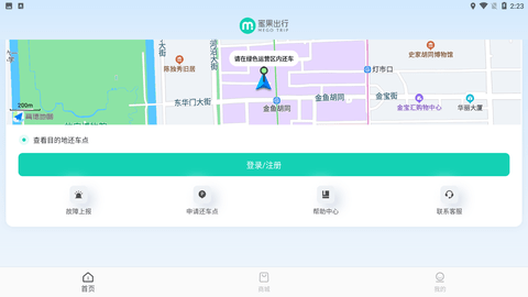1.让用户通过app提供地图信息,快速掌握周边可以使用的蜜果出行信息;